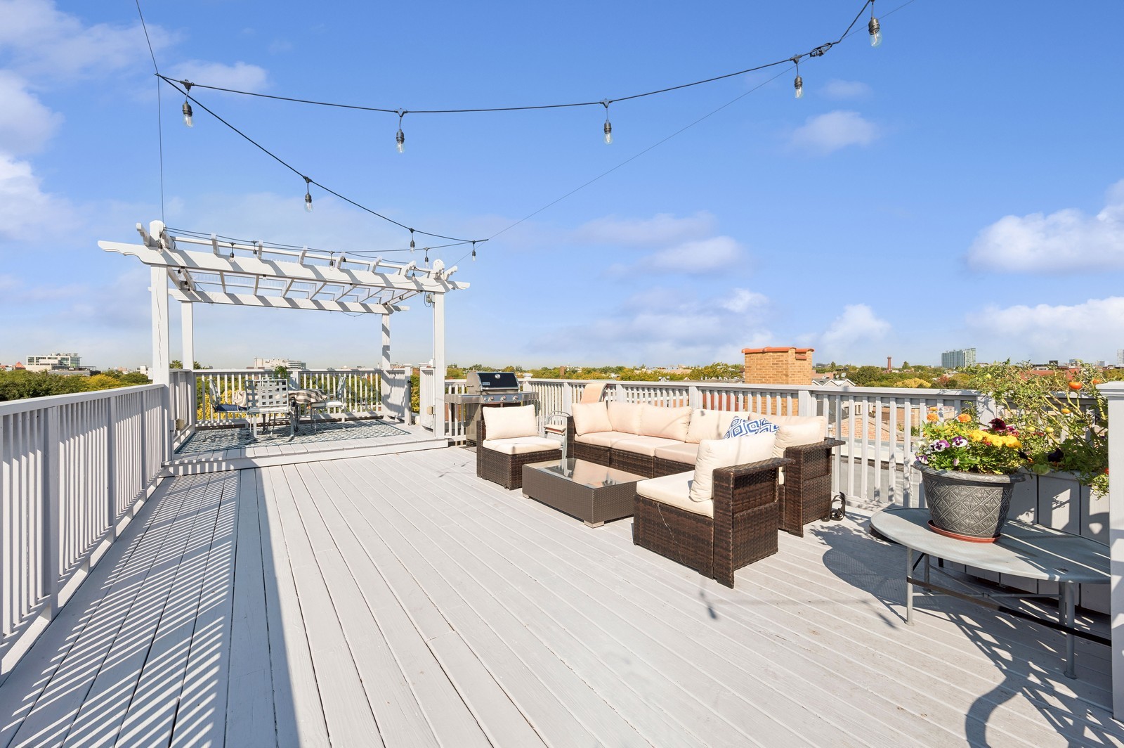 Welcome home! Located on the border of Old Town and Lincoln Park, this turn-key 3bed/2bath penthouse offers over 2000sf of living space and a 41'x15' private rooftop deck with spectacular views of Chicago. As you enter the apartment, you're welcomed by an extra wide-open floor plan that's flooded with natural light from unobstructed eastern and southern exposures. The kitchen is perfect for both entertaining and day-to-day life as it features stainless steel appliances, 42" cabinets, a subway tile backsplash, a large island, and plenty of storage. The 20'x13' primary bedroom is tucked off the back of the apartment, offering its own Juliette balcony, walk-in closet, second additional wall closet, and en-suite bathroom with dual vanities and separate shower and bathtub. The second bedroom is generous in size and the third offers French doors and works well as either a home office or a guest bedroom. Other notable features include hardwood floors, taller ceilings, a gas fireplace, hallway built-ins, in-unit laundry, and plenty of character as this isn't your traditional layout. The private roof deck offers incredible 360-degree views as well as gas and water lines. One gated outdoor deeded parking spot is also included. Located within the Lincoln Park School District and walking distance to some of the best amenities the city has to offer, this location is tough to beat!