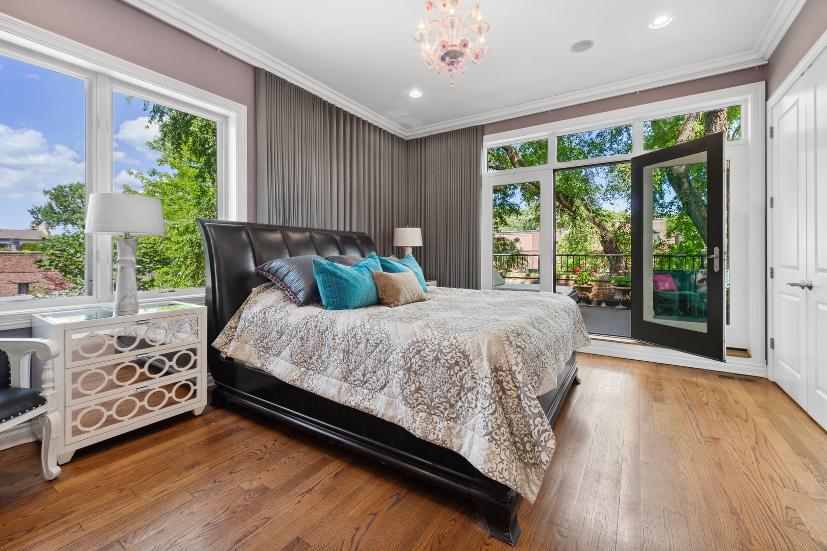 Exceptionally rare opportunity to lease a incredibly unique, luxury fully furnished SFH in the heart of Lincoln Park. Located on a refined residential stretch of Bissell Street, steps from first-class dining and boutique shopping along Armitage and Halsted Avenues, this spacious modern home features 5 bedrooms, 5.5 baths and 5 private outdoor spaces. Flawless architecture, high ceilings, custom millwork and an abundance of natural light are evidenced throughout, beginning with a spacious living/dining great room that flaunts rich hardwood floors, French doors that open onto Juliet balconies, designer window treatments, a statement fireplace and bold light fixtures. The adjacent chef's kitchen stuns with custom white cabinetry, marble countertops, SubZero/Wolf appliances and a butcher's block island with counter seating, and connects to a light-filled family room with double-height ceilings and wall-to-wall windows. Here, access is granted to a covered back deck, a landscaped yard with patio, and yet another outdoor deck above the two-car garage. Upstairs, three lovely ensuite bedrooms and a laundry room present on the second level. The third level is entirely devoted to the primary suite, which features an amazing private terrace sited under an impossibly gorgeous tree, hotel-worthy spa bath with dual vanity and standalone soaking tub, and a charming WFH office with beautiful built-ins which opens onto another cozy terrace. This spectacular home also boasts a fully finished lower level that includes a rec room with fireplace, a wine cellar, excess storage, a second laundry and a fifth bedroom that is currently set up as a home gym. Complete with design-forward furniture and a footprint that's perfect for entertaining, 1925 N. Bissell St. is turnkey Chicago living for the whole family.